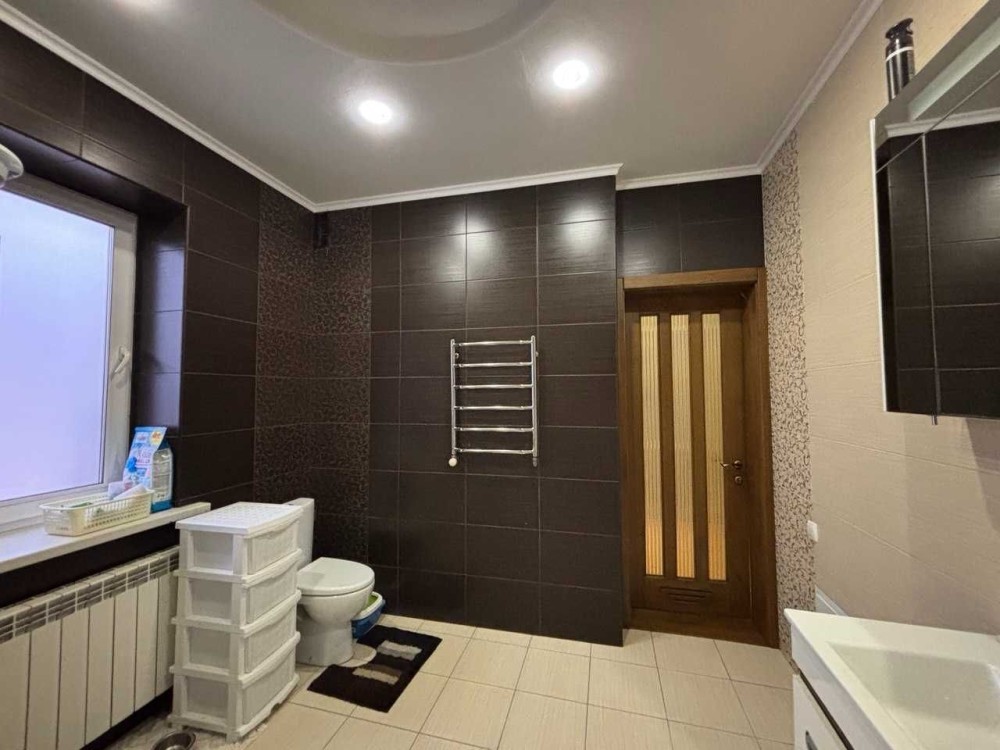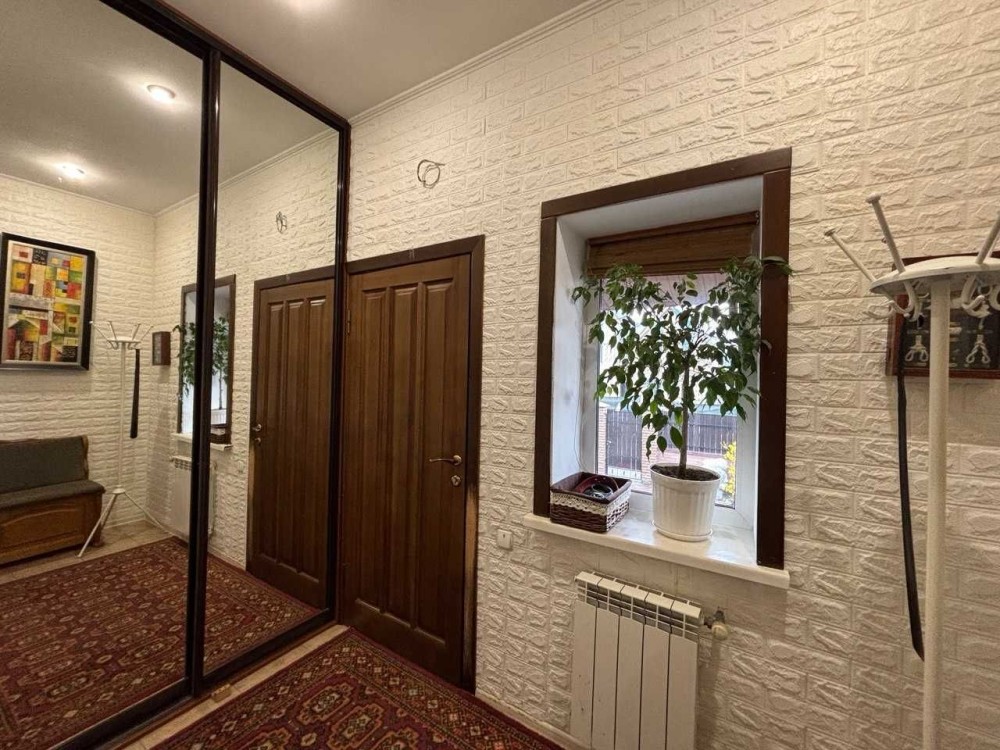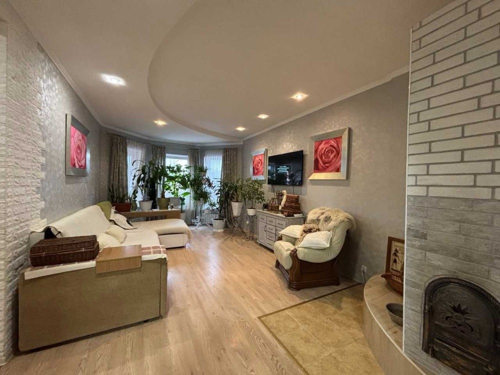 Продам просторий міцний будинок пл. 240 /80/25 на ділянці 5 соток по вул. Русановича, Сади. Має три повноцінних рівні (див. плани поверхів), два окремих входи - можуть автономно проживати дві родини; газифікований, з окремим камінним залом, затишним двором, гаражем та надійним просторим підвалом. У будинку працює три види опалення, на вибір: газовий та електо та твердотопливний котли, власна свердловина, каналізація з переливом. Високий , міцний, надійний, збудований по господарськи. Кілька кімнат, гардеробна, 2 с/в, 2 кухні, в ремонті використано дерево, паркет, натуральну дошку, кахлі. На цокольному поверсі розташовано гараж із заїздом з дороги, топкову, є приміщення для майстерні чи спортивної зони, погреб, комора. Продається з вбудованими меблями, решту власники забирають. Ціна 330 тис у.о., торг.
