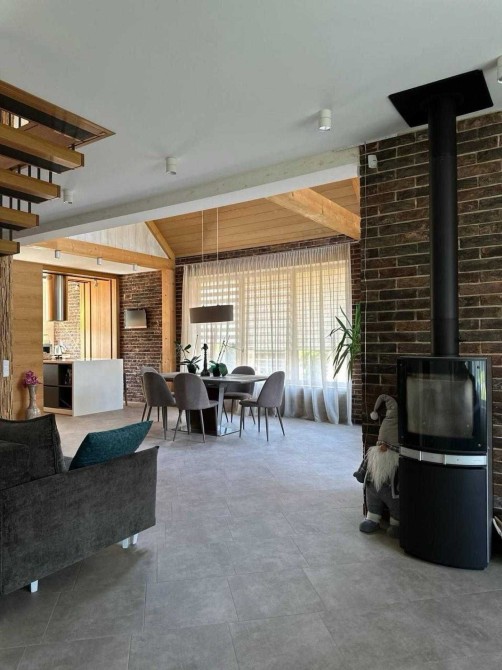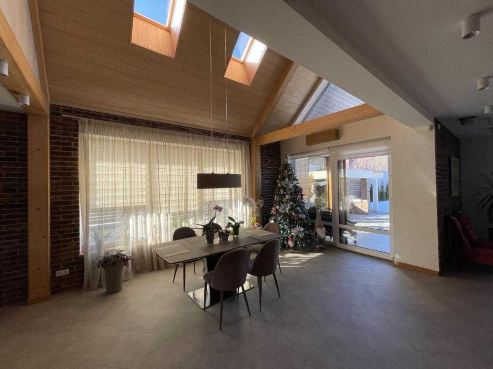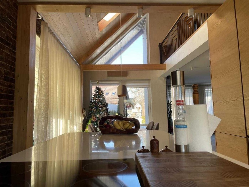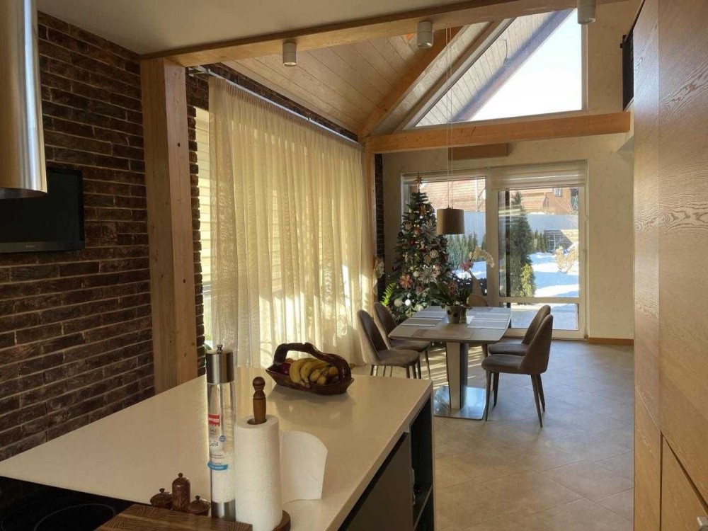 - Простора кухня-вітальня з великими вікнами, які наповнюють приміщення природним світлом та створюють атмосферу затишку.