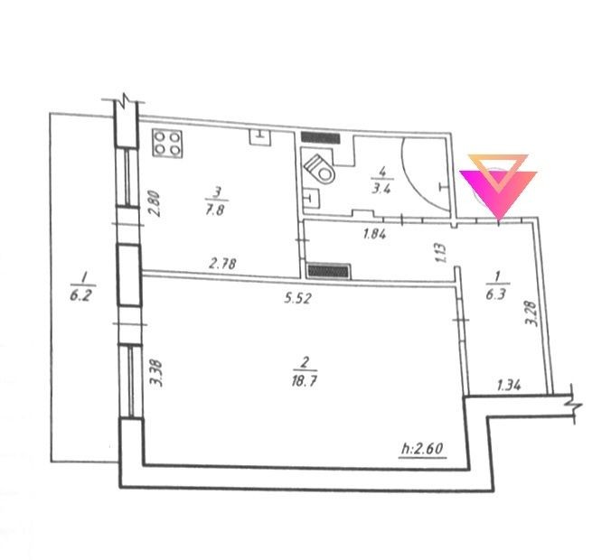 • Загальна площа 38 м2