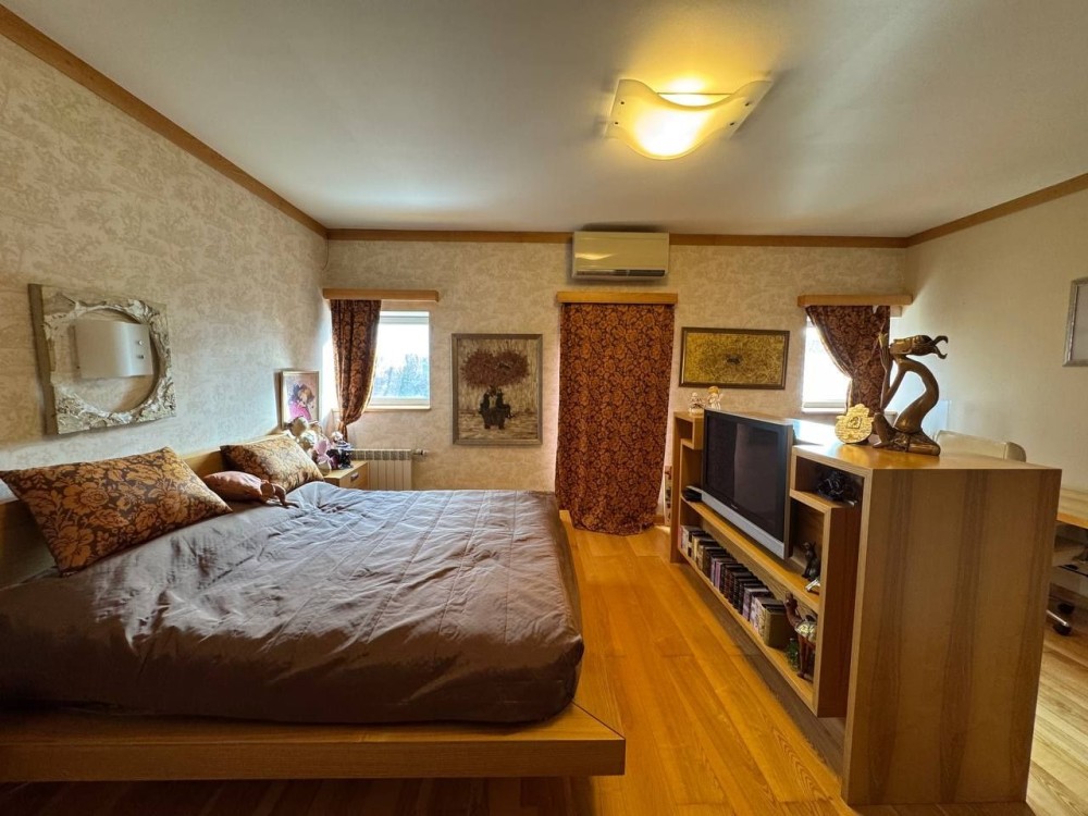 Третій поверх — приватна територія комфорту. Дві просторі спальні, кожна зі своєю ванною та гардеробною. Великий балкон із панорамою, від якої перехоплює подих. Тут можна снідати, тренуватись, читати чи просто ловити тишу. А драбина на дах відкриває доступ до видовищ, які зазвичай бачать лише птахи.