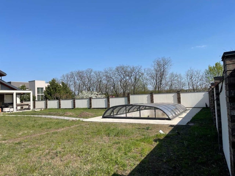 На территории участка расположен крытый бассейн с баней.
