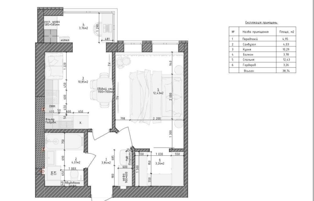 • Загальна площа 38 м2