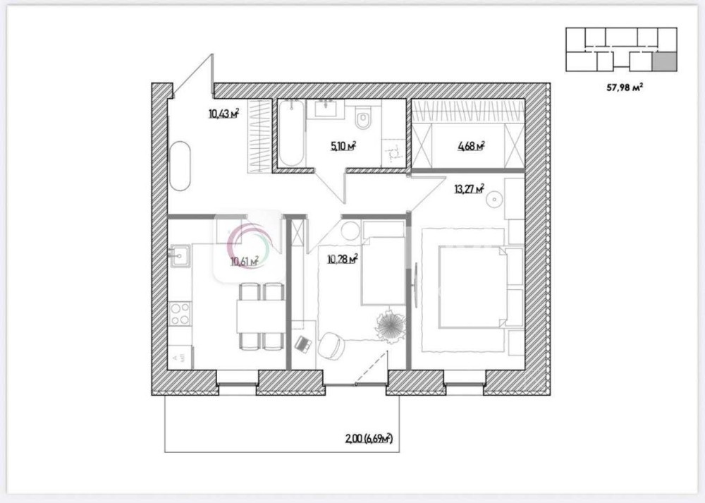 • Загальна площа 58 м2