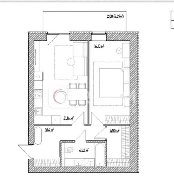 Квартира має вільне планування, що дає змогу реалізувати будь-які дизайнерські рішення і є дозвіл об’єднати дві квартири в одну простору.