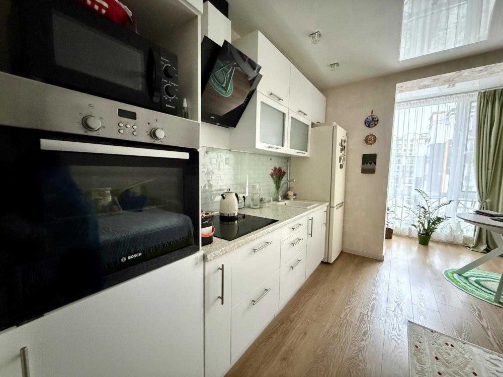 Світла та затишна квартира-студія з ремонтом у комфортному закритому комплексі. Квартира має вдале квадратне планування, що дозволяє зручно зонувати простір на кухонну та житлову частини.