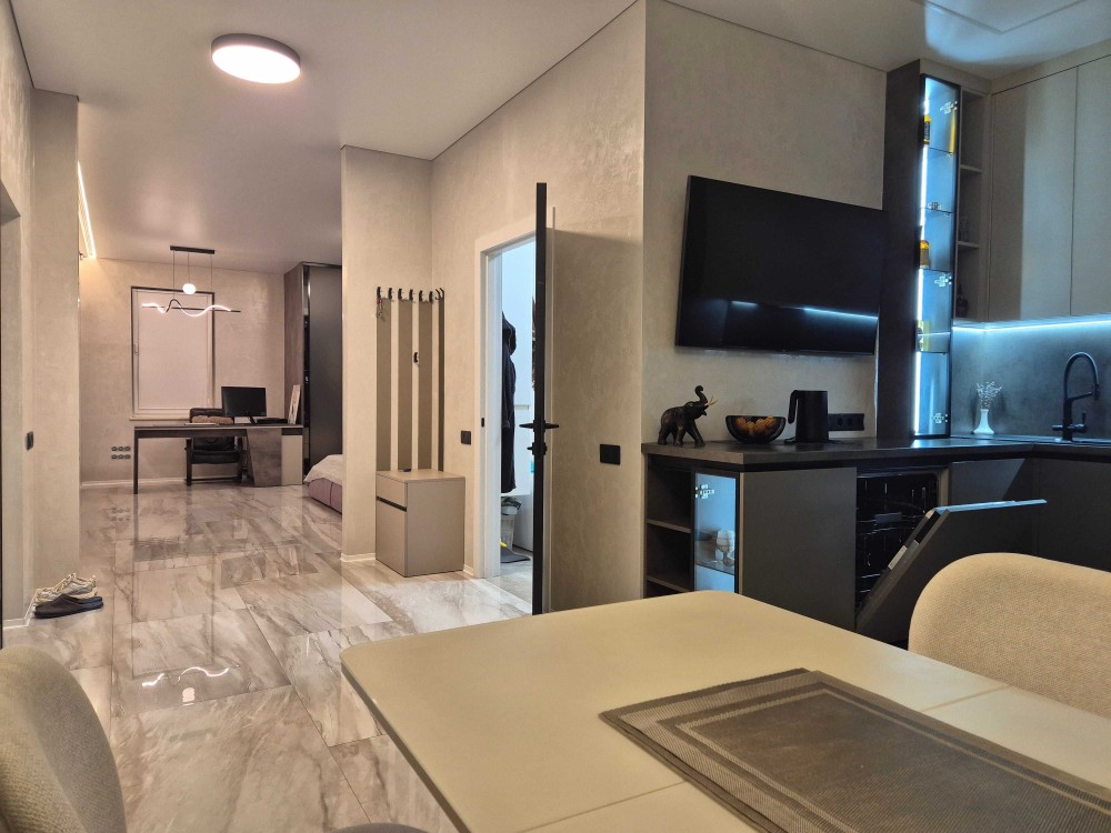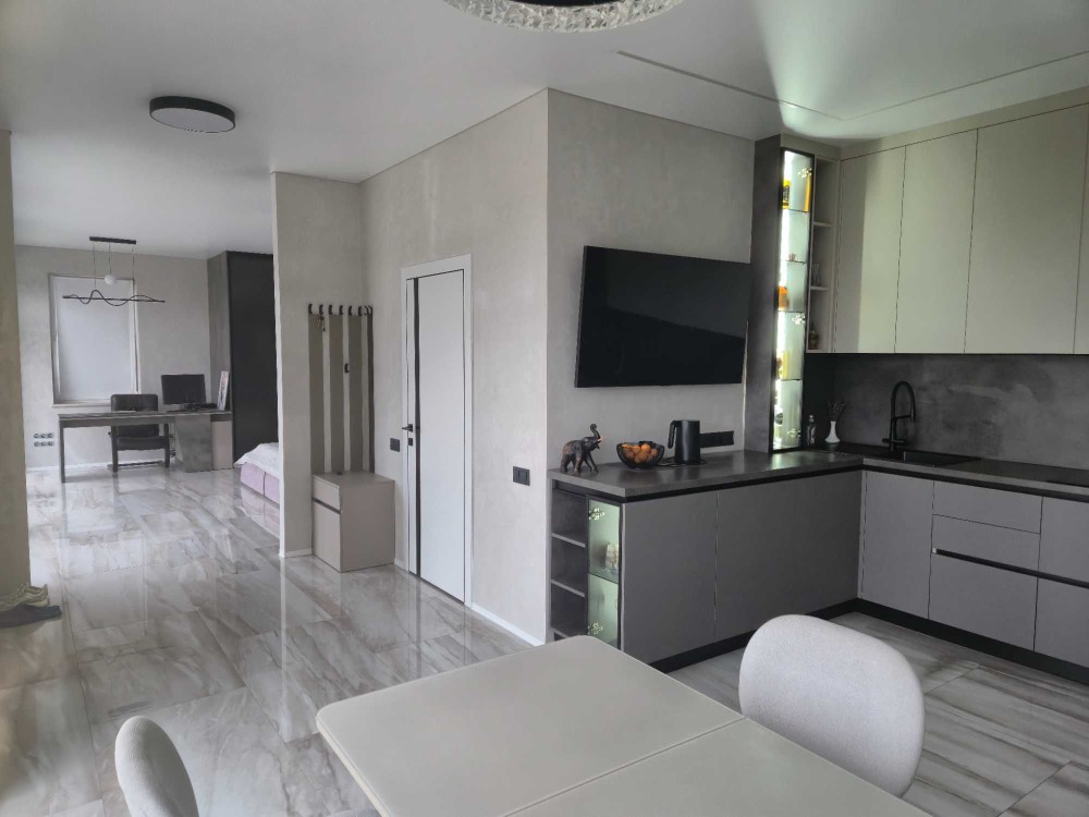 Стан: з ремонтом і меблями, виготовленими під замовлення з коштовних матеріалів. На всіх стінах декоративна венеціанська штукатурка з ефектом «карта світу».