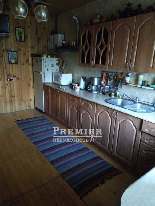 Простора кухня-студія повністю обладнана технікою: холодильник, мікрохвильова піч, електроплита, стабілізатор напруги. Встановлено бойлер та передбачено запас води у підвалі, що робить будинок повністю автономним. Окремий другий поверх із самостійним входом.