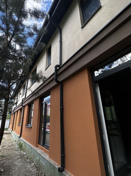 Базова комплектація таунхаусів та дуплексів: вільне планування на всіх поверхах, заведені комунікації (скважина, електрика 10,5 кВт, септик). Можливість підключення газу. В дуплексах Газ буде підключений.