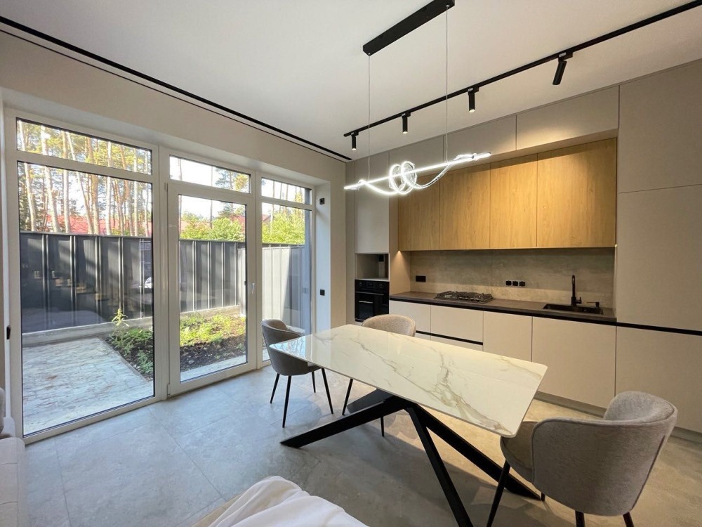 Таунхаус в Ірпені поруч із Центральним парком — ідеальне місце для життя в тиші та комфорті, але з усіма міськими зручностями поруч: школа, садочок, магазини, кафе, спортзал і зупинка транспорту — усе в кількох хвилинах від дому.