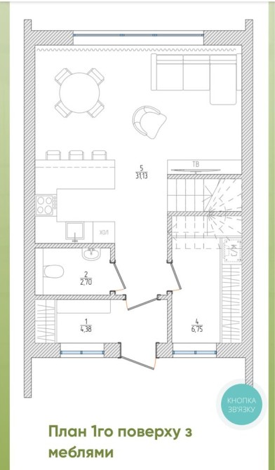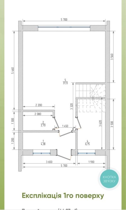 1 поверх: кухня-вітальня, санвузол, котельня, вихід у двір