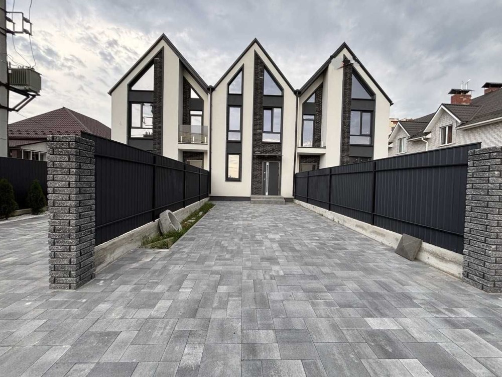Продам готовий трирівневий будинок в стилі "барн - хаус" типу "триплекс (є зони блокування від суміжних будинків 40 см, дуже теплий) на ділянці 2 сотки по вул. Вукаловича, с. Щасливе (Бориспільський район) - центральна частина села, гарний підїзд, поруч вся інфраструктура, :школа, садочок, магазини, кафе, почта і т.п. До супермаркетів кілька хвилин на авто, до метро 7 хвилин від будинка. Площа по тех. паспорту 100 м2 , по факту на 40 м2 більше - є повноцінний 3 поверх з вікнами, де можна обладнати 2 спальні - дитячі, майстерні, спортзал. На першому поверсі простора кухня - вітальня з вікнами в підлогу, виходом на терасу, с/в, госп. блок. На 2 поверсі 2 спальні, с/в. Характеристика будинка: фундамент - стрічковий, армований, монолітний, утеплений, облицьований керамогранітною плиткою; стіни - керамоблок "Кератерм" 250 та 380 мм; утеплення зовнішніх стін - 100 мм ППС; облицювання зовнішніх стін - декоративна штукатурка, фарбування, фасадна плитка; термошви по периметру, на перекриттях вікон та дверей, на всіх можливих "коридорах холоду"; перекриття 1 поверху, підлога - відокремлені від суміжного будинка, монолітні, литі, з шумо та вібро ізоляцією від суміжного будинка; міжповерхове перекриття - залізобетонне монолітне; дах - профнастил матовий, утеплення 200 мм мінеральною ватою по перекриттю; дощова стічна система - графіт; вікна - металопластикові, 7 профільні, ззовні ламіновані Viknaroff MegaLine, 70 мм, з тонованим, енергозберігаючим склом, фурнітура Siegenia Favorit; вхідні двері - вуличні броньовані термодвері Redford 95 мм з утепленням корком, з полімерними накладками в метал і- не бояться води і світла. Міжповерхові сходи - залізобетонні монолітні; електрика - 3 фази, 13 кВт заведено в будинок, індивідуальний двозонний лічильник (по факту стоять автомати на 17 квт) ; каналізація централізована, заведено в будинок, є виходи каналізації в кухні з усіх сторін, щоб можна було поставити, як зручно, зону кухні; вода - централізована, заведено в будинок. Ділянка огороджена матовим профнастилом профіль ПК 15. Тераса - мощена керамогранітною плиткою, площа 16 кв.м., з накриттям із ізраїльського прозорого полікарбонату; паркомісце для двох автомобілів вимощено тротуарною плиткою 60 мм. Є середній будинок, крайні продані. Продаж від власника, без комісії. Ціна 87 тис у.о.