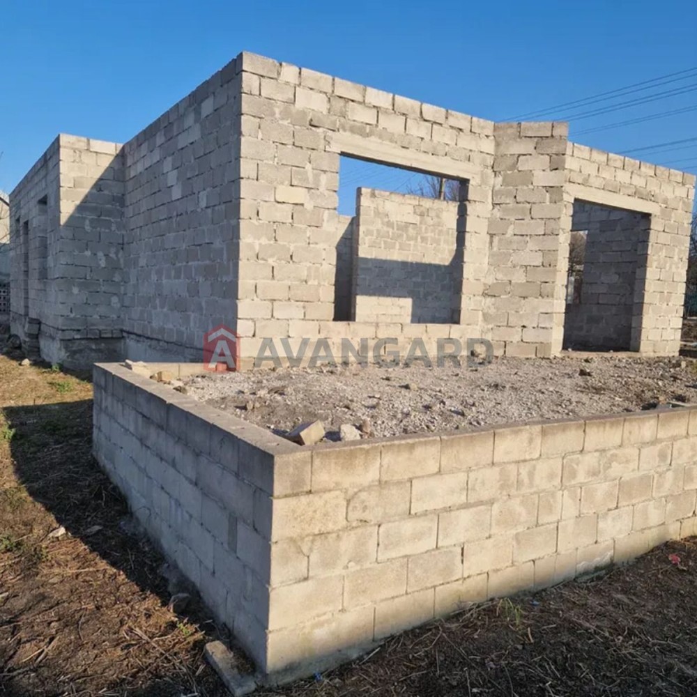 На участке начато строительство дома (залит фундамент и выведены стены, заложена вода и канализация). Под частью дома залит подвал. На участке залита новая сливная яма. В пешей доступности от участка остановки двух маршрутов общественного транспорта, школа, детский сад, новая амбулатория. Улица освещена. Электричество на участок заведено – стоит счётчик. На воду также выложен колодец и установлен счётчик. Рядом остановка общественного транспорта, магазины, садик, школа, амбулатория.