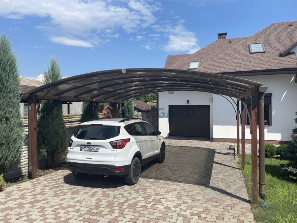 Тераса 20 м2, гараж з ролетними воротами, паркування на 6 машин, металевий навіс з полікарбонатом, автоматичні ворота.