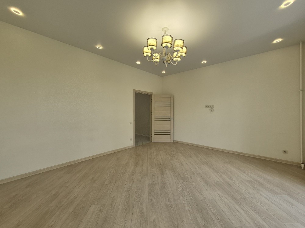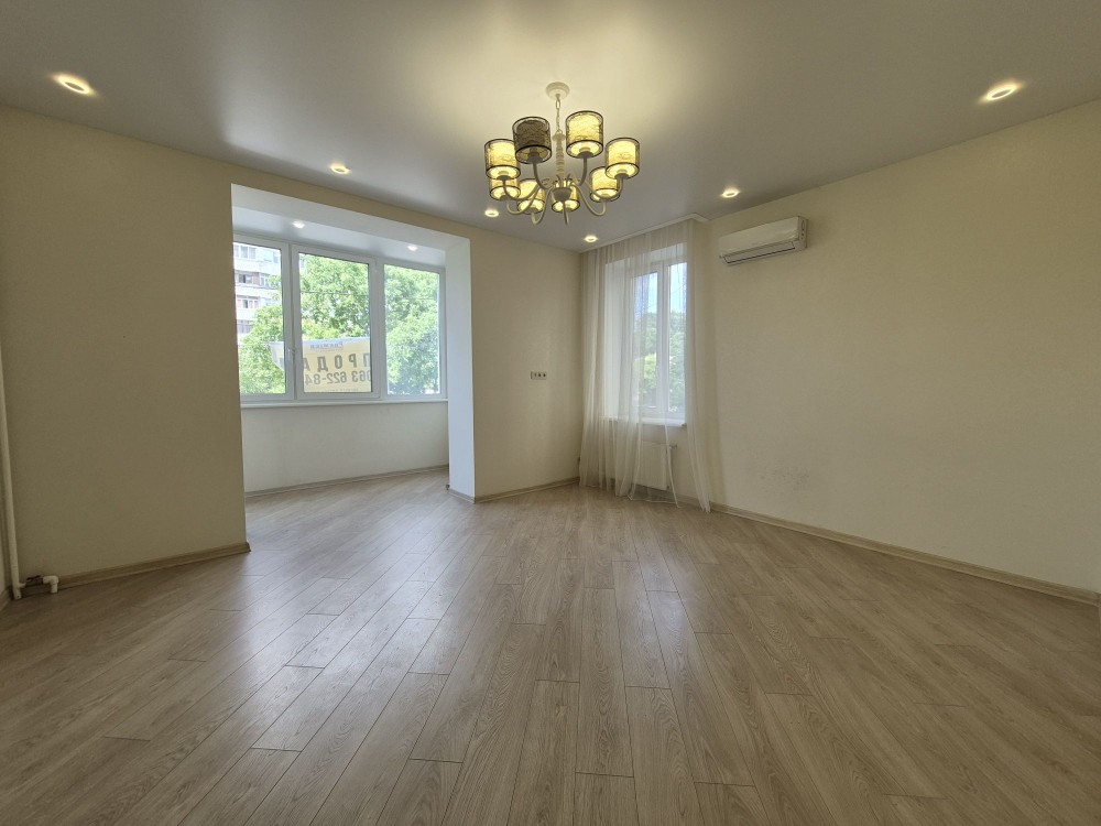 Загальна площа 57м2, житлова 20м2 з розкритою лоджією, кухня 18м2 з еркером.