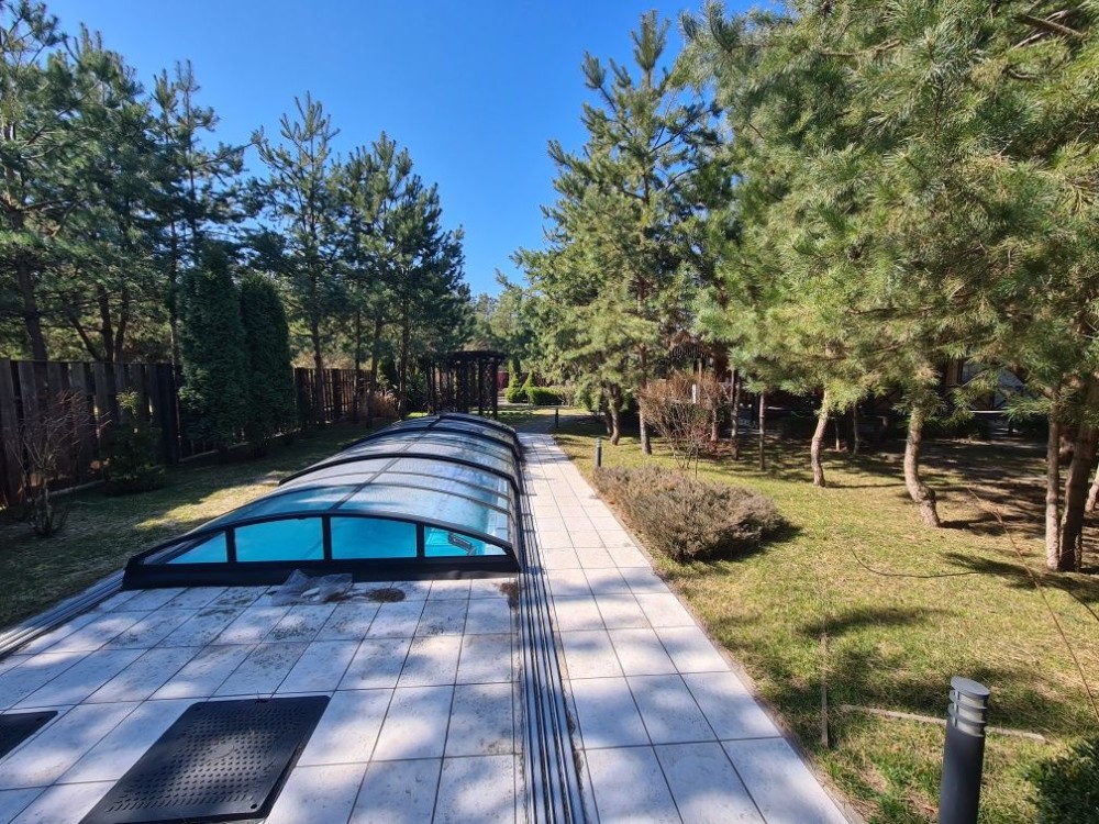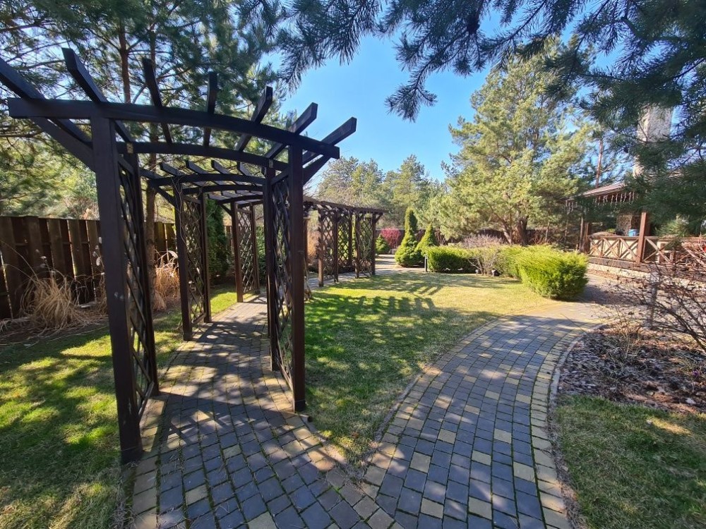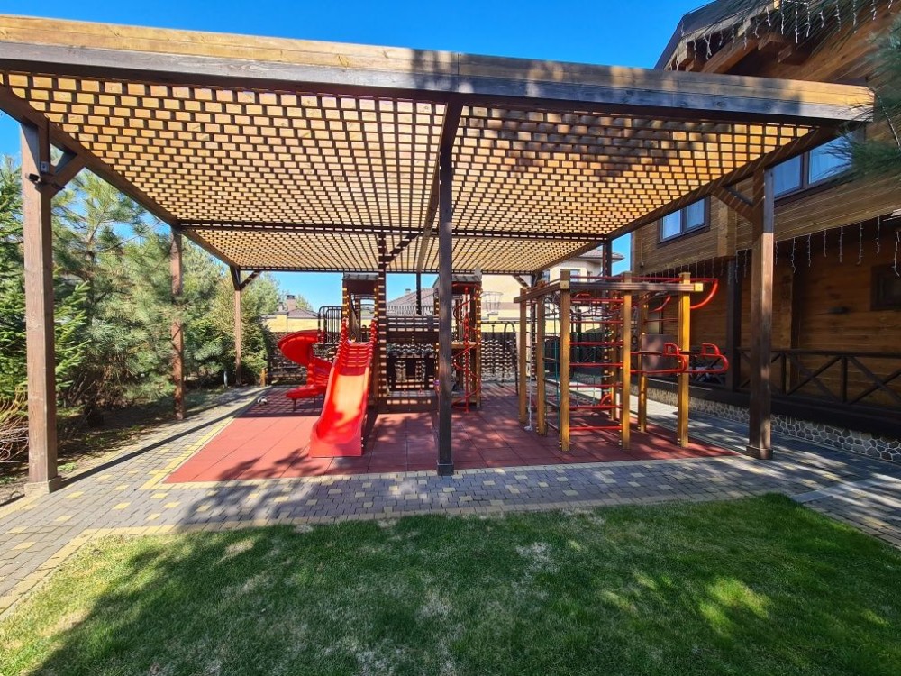 Территория 16 соток, зелёный насаждения, зоны отдыха, большая детская игровая зона, бассейн с подогревом, хоз.постройки, навес на 2 авто.