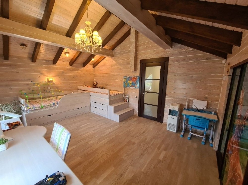 Второй этаж : 3 спальни( из них 2 детских с 4 спальними местами), сан.узел.