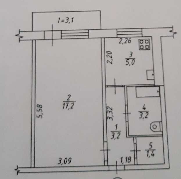 • Площа кухні 5 м2