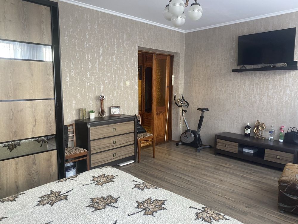 Продам приватний двоповерховий будинок: 7 житлових кімнат, велика кухня, на 1 поверсі суміжна ванна і туалет, на 2 поверсі душова кабінка і окремо туалет, є підвал, літня кухня, котельня, допоміжна будівля (сарай) на три приміщення. Біля будинку є фруктові дерева: абрикос, персик, вишня, слива, виноград. Будинок опалюється газовим двуконтурним котлом, будинок повністю житловий, зроблений косметичний ремонт, заходь і живи. Є можливість зробити будинок на два входи. Можливо частково з меблями.Поряд є земельна ділянка 3,5 сотки з недобудованим гаражем.