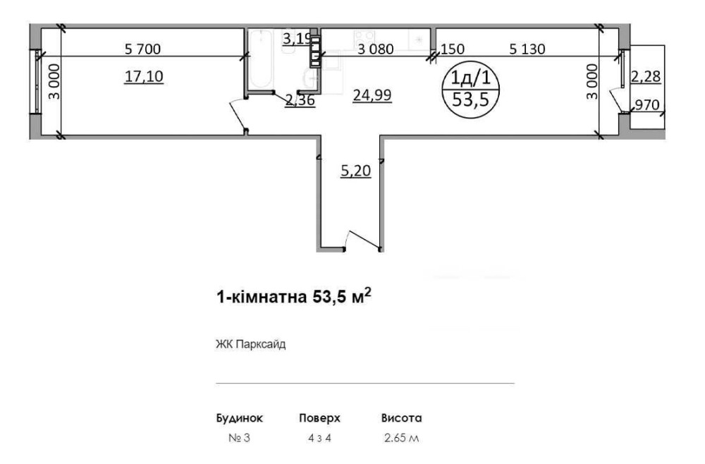 • Загальна площа 53 м2
