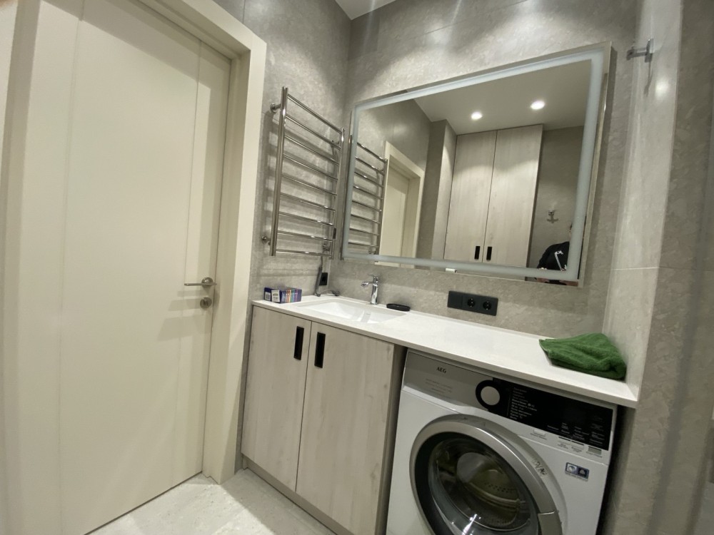Раціональне планування: окрема кімната з виходом на засклену панорамну лоджію, відкритий балкон, простора кухня. Квартира з новим дизайнерським ремонтом з використанням високоякісних будівельних матеріалів. Раціональне планування, кухня-житлова Відмінна велика спальня. Тепла підлога. Всі меблі виготовлені на замовлення, матеріали МДФ, ДСП фірми Kronospan Іспанія. Кухня фірми Egger з фартухом із натурального каменю. По всій квартирі встановлена ​​високоякісна сантехніка Kludi, Ravak та вбудована техніка.