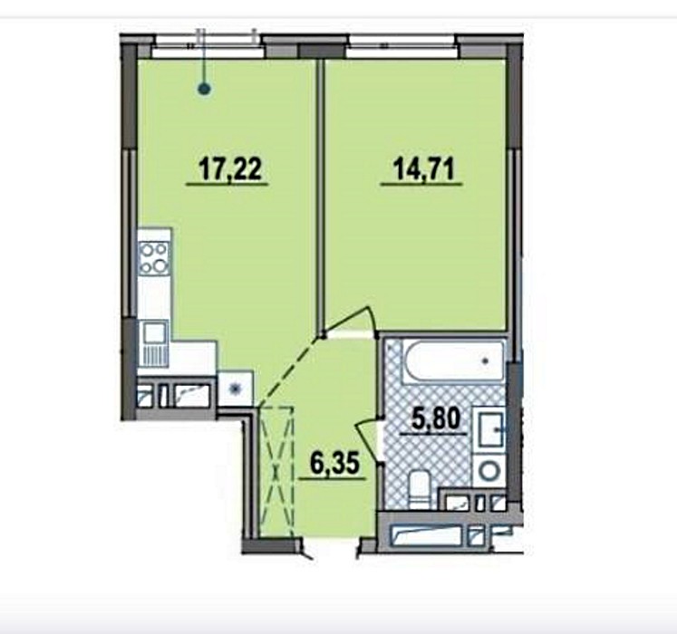 • Площа кухні 17.22 м2