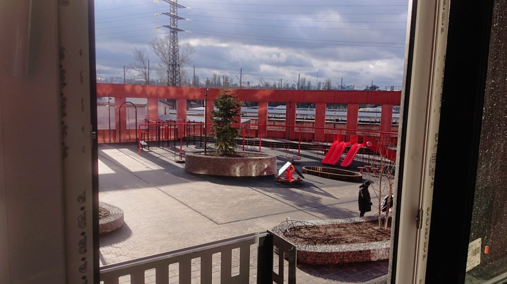 Вид із вікон: На ​​подвір'я, на дитячий майданчик, тихе місце.