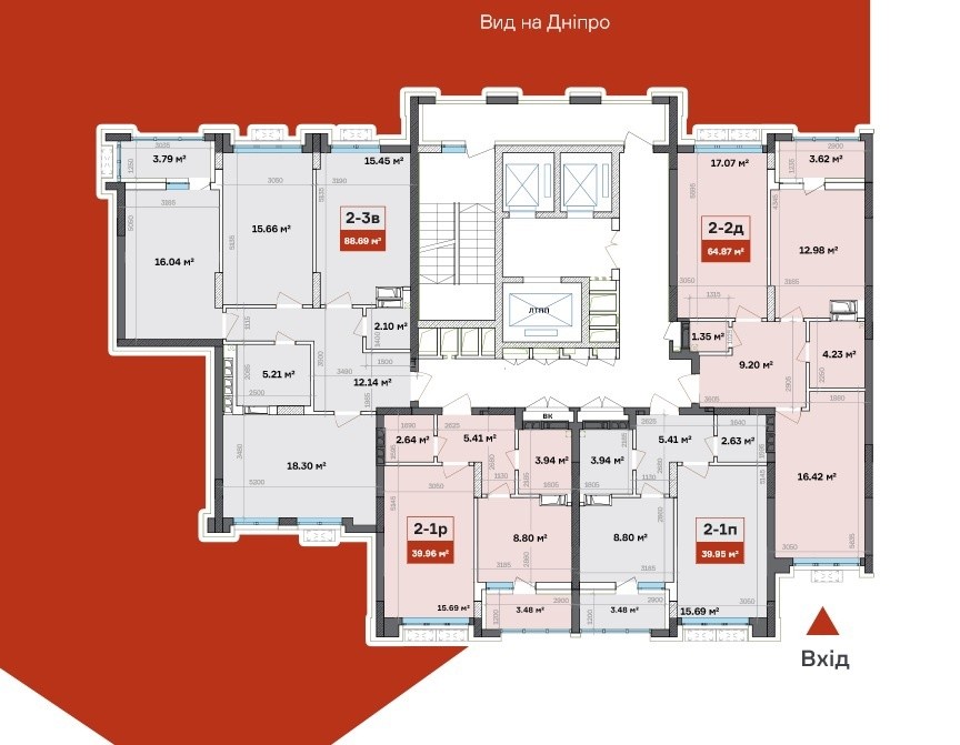 Секція: 2, всього 4 квартири на поверсі