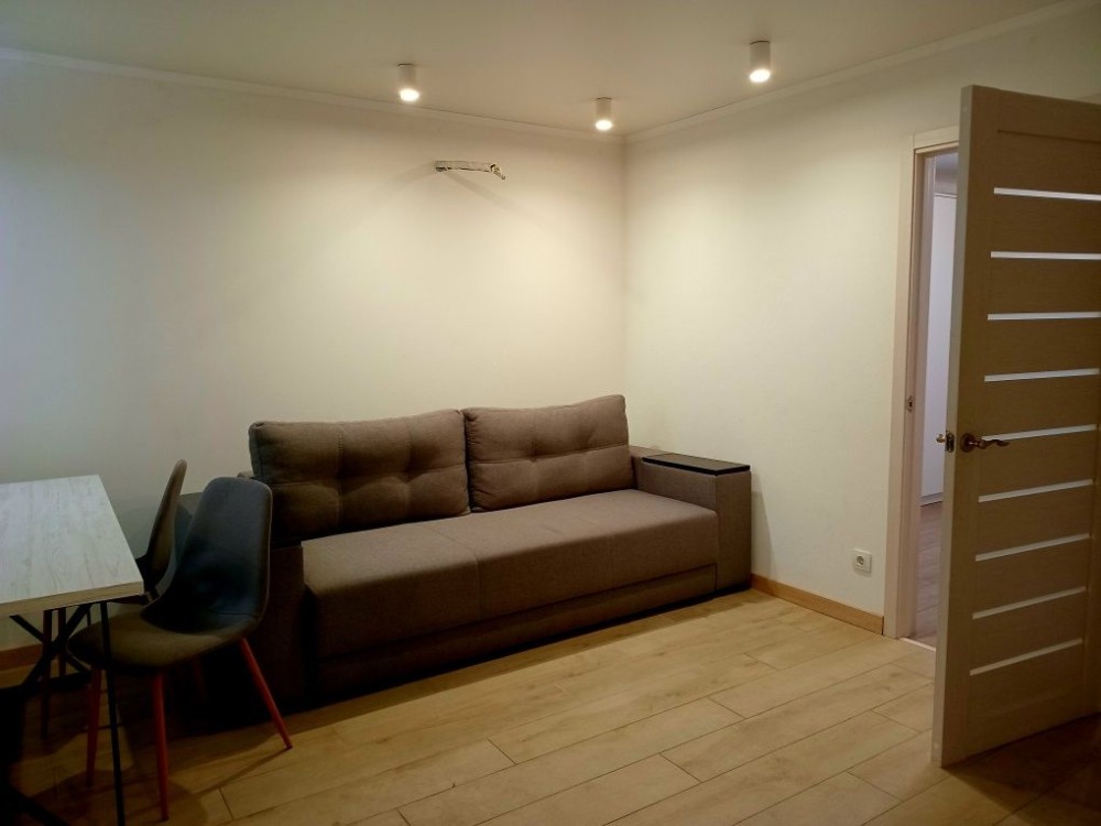 Квартира перепланована на кухню - вітальню і окрему спальну з виходом на балкон.