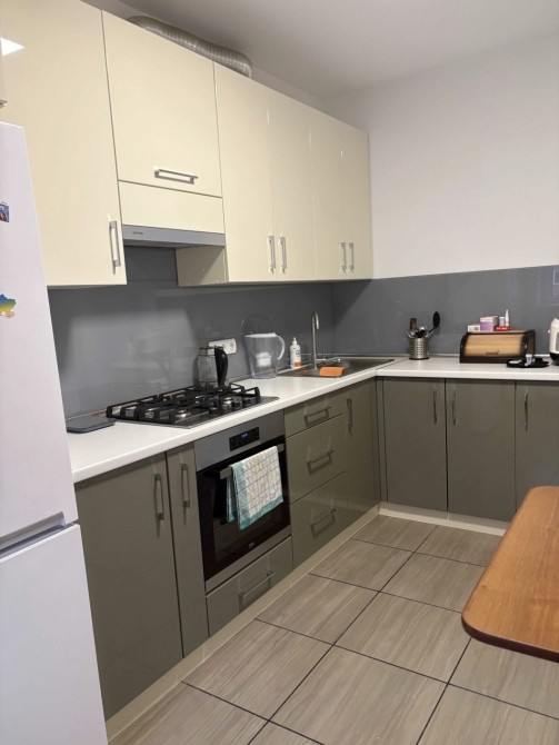 Квартира укомплектована меблями та побутовою технікою: холодильник, газова варильна панель, духова шафа, мікрохвильова піч, пральна машина. Є телевізор та Wi-Fi.