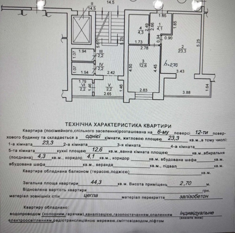 • Загальна площа 44.3 м2