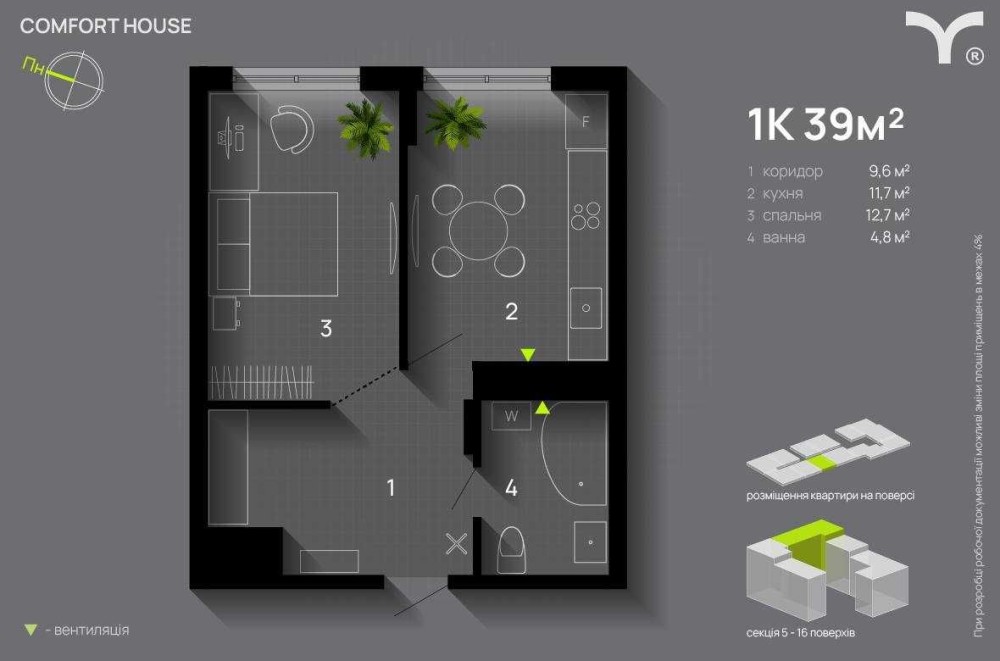 • Загальна площа 39 м2