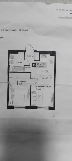 • Загальна площа 36 м2