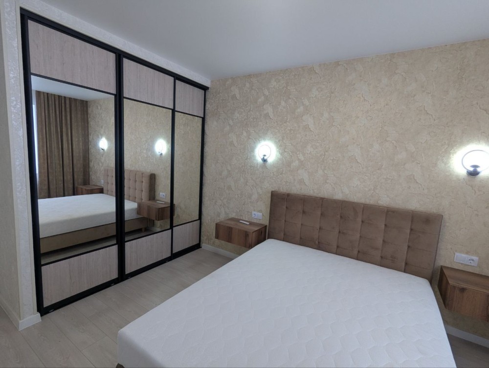 Меблі (вмонтована кухня, стіл + 2 стільці, шафа-купе (2шт.), ліжко 2х спальне)