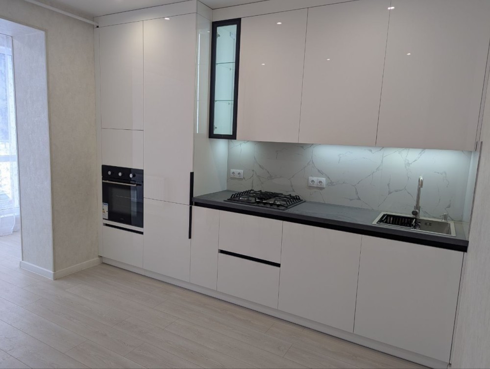 Побутова техніка: холодильник вмонтований, газова поверхня, духова шафа