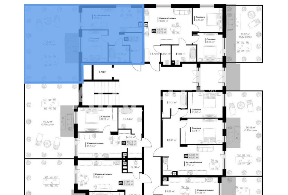 Сучасна квартира в комплексі бізнес-класу від Lev Development. Продумане планування: простора кухня з виходом на велике патіо, ізольована спальня та великий санвузол. Патіо - це фактично продовження квартири: можна висадити тую, поставити терасні меблі, зробити зону відпочинку та навіть розмістити електричне BBQ. У будинку передбачено консьєржа, управлінську компанію, дворівневий підземний паркінг (є можливість придбати місце за вигідною ціною) та ландшафтний дизайн від компанії Gardener.