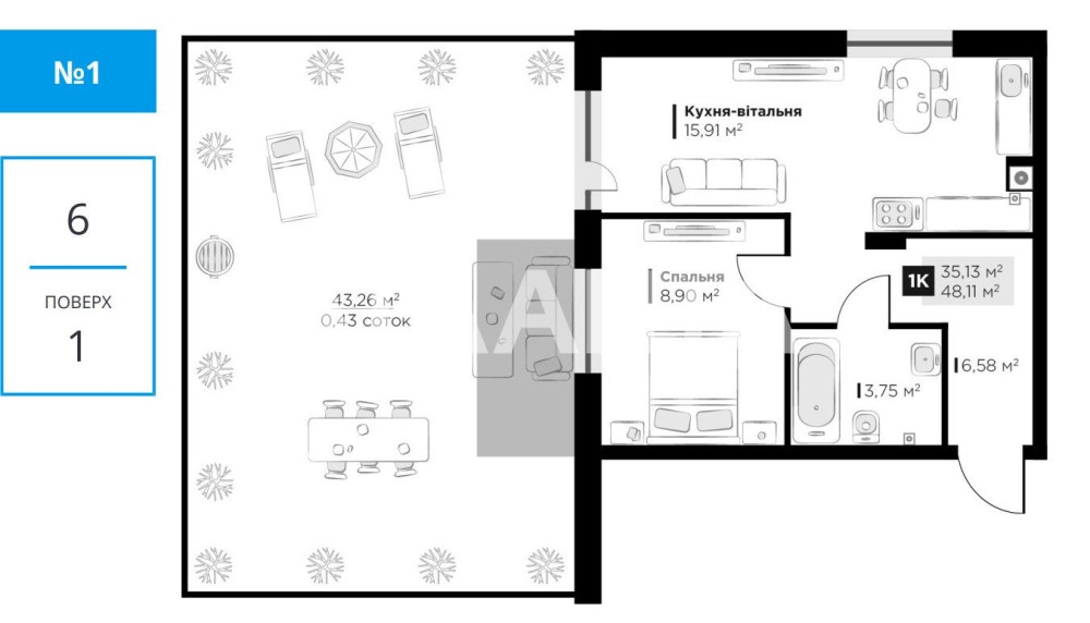 • Загальна площа 48.11 м2