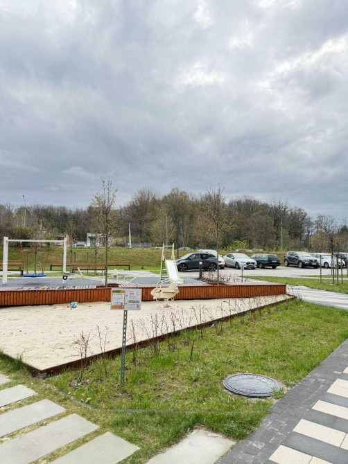 В будинку є підземний паркінг, дитячий майданчик, супермаркет