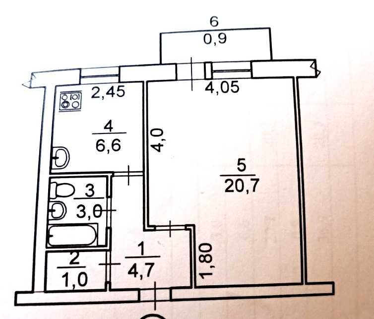 • Площа кухні 6.6 м2