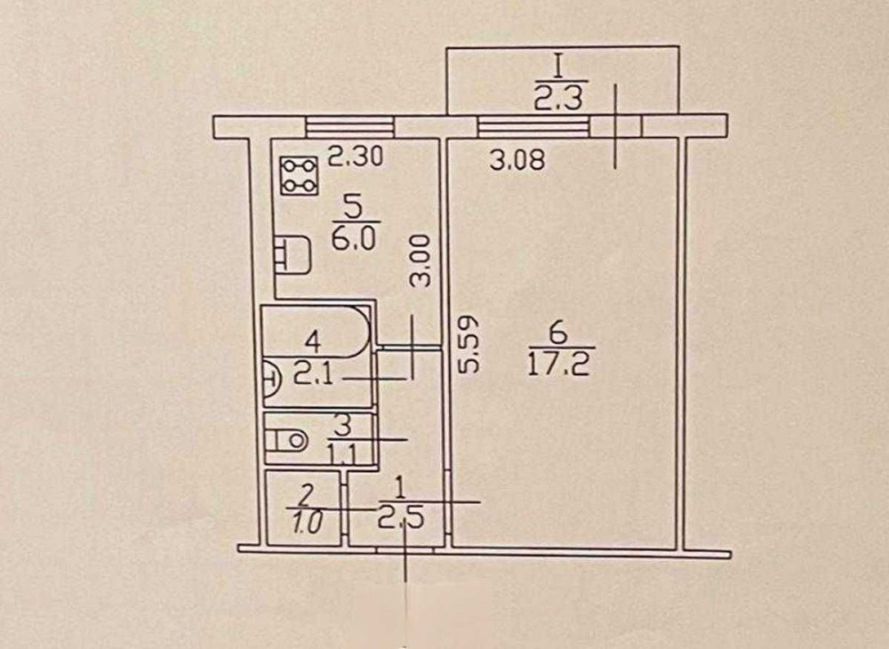 • Площа кухні 6 м2