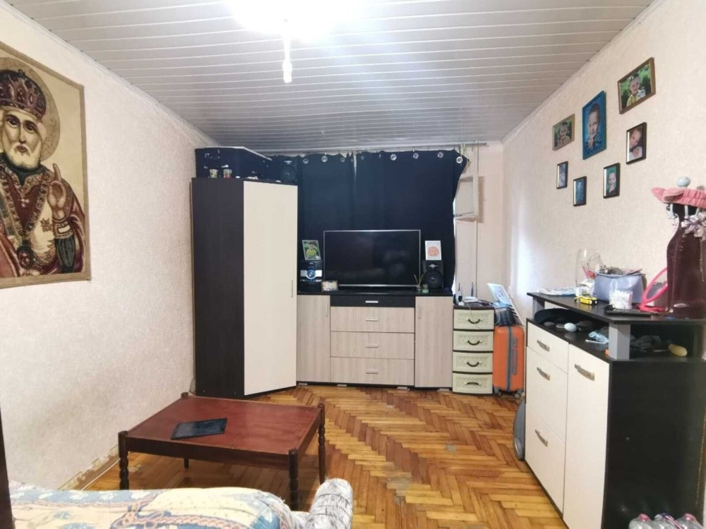 Пропонується до купівлі 1 кімнатна квартира у Заводському р-ні на Павло Кічкасі по вул. Республиканська, розташована на першому поверсі 5-ти поверхового будинку, квартира у житловому стані, підлога паркет, у кімнаті на кухні та коридорі лінолеум, кімната з нішею, с/в сумісний, кахель, замінено водопровід, лічільники. Продаж без меблів і техніки. Документи на квартиру у порядку, власники у місті.