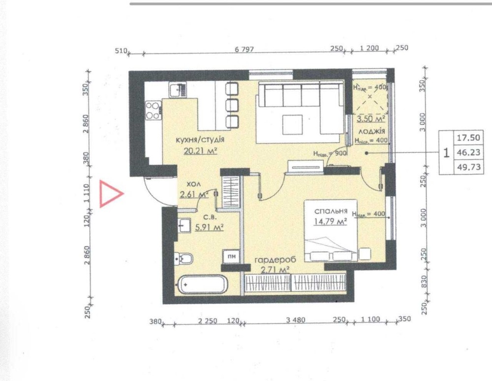 • Загальна площа 49.73 м2