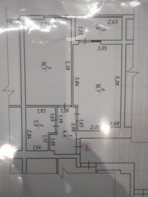 Загальна площа - 44 кв.м., житлова - 16 кв.м., кухня - 16 кв.м.