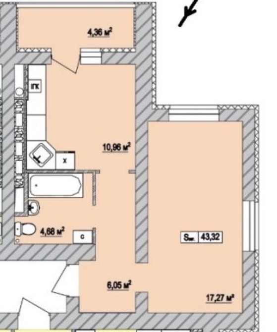 • Загальна площа 43 м2