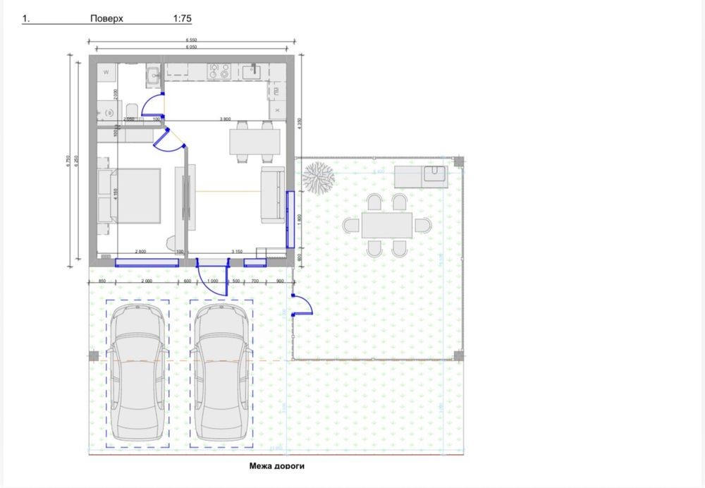 Продаж 1 кімнатного котеджу на першому поверсі з власною ділянкою для двох машин.