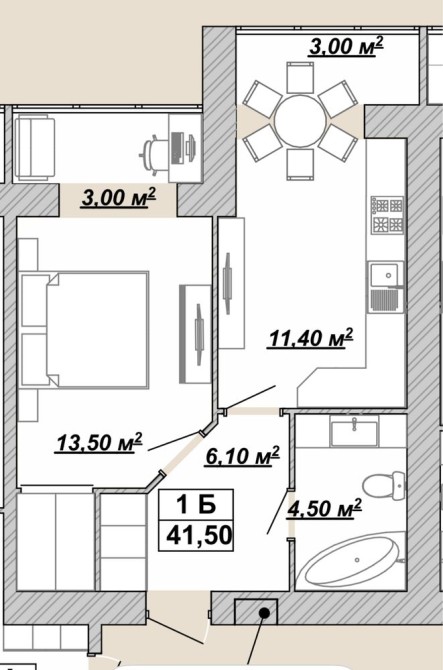 • Площа: 41,5 м2