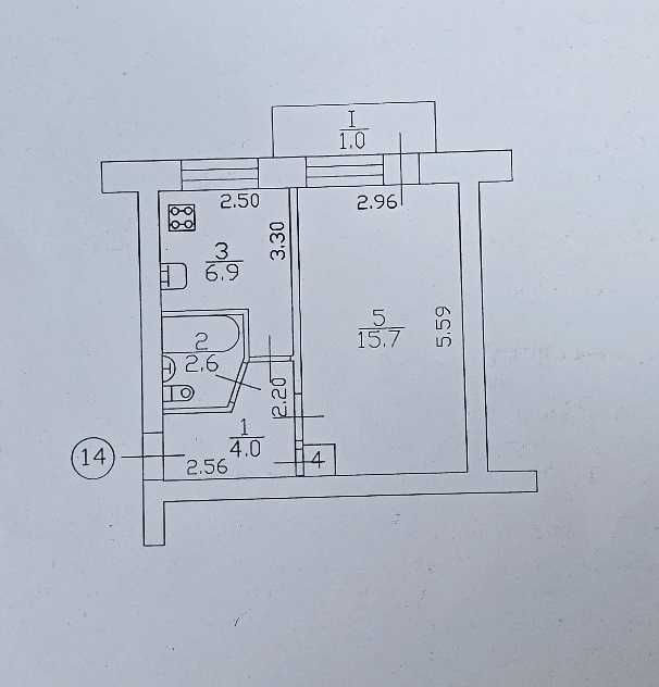 Кімната 15,7 м², кухня 6,9 м².