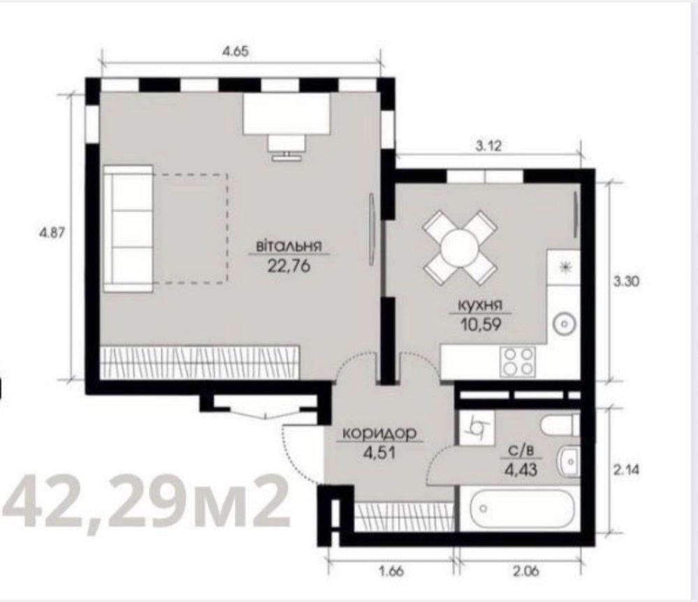 • Загальна площа 42.29 м2
