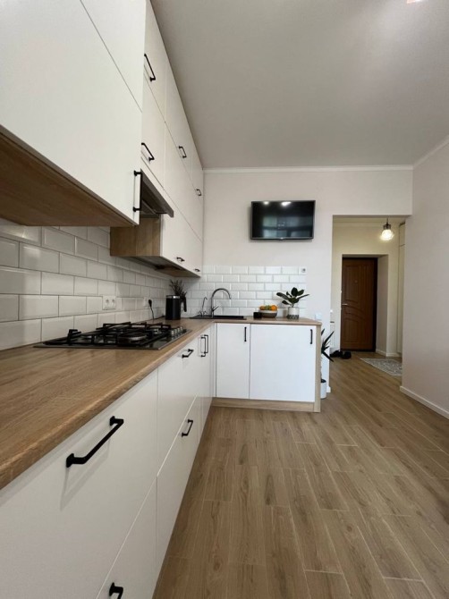 Духова шафа, варильна поверхня, витяжка, пральна машина, телевізор — квартира продається у форматі “заїжджай і живи”.