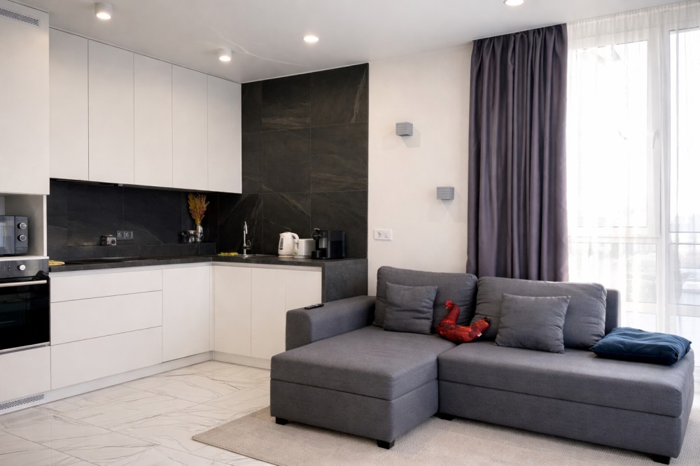 Площа квартири складає 38 кв.м. зроблено зручне перепланування з затишною спальнею та просторою кухнею вітальнею, яка складає 17 кв.м.