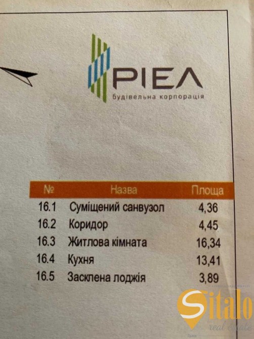Поверх 4/9. Загальна площа квартири 42 кв.м., житлова площа 16,3 кв.м., кухня 13,4 кв.м., також в квартирі є засклена лоджія із кухні 3,8 кв.м. Вигляд із вікон у внутрішній двір.
